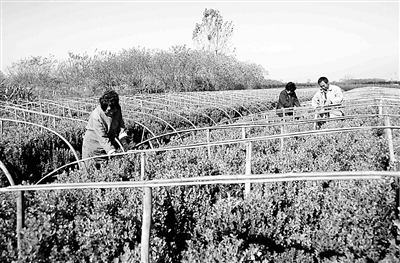 10月31日,望都县贾村乡新建安村的苗农在对苗木进行日常管理。近年来,河北望都县贾村乡积极发展花卉苗木种植产业,目前,该乡花卉苗木种植面积达1.58万亩,苗农亩产收益达1万余元。 朱旭东摄(新华社发)