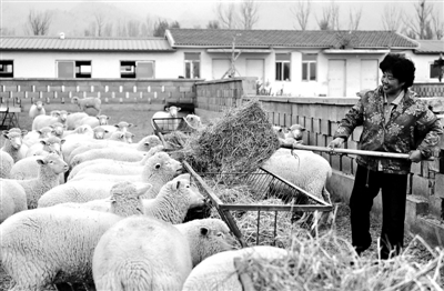 11月1日,包头市九原区梅力更养殖有限公司的工作人员在给良种种羊喂饲料。位于包头市九原区的这家公司是当地种羊养殖培育基地,今年10月起,基地开始免费为当地羊进行杂交改良,目前已完成600余只,计划2013年内将改良杂交技术覆盖全市,提高当地羊的出肉率,带动当地农牧民走上致富路。 新华社记者 赵婷婷摄