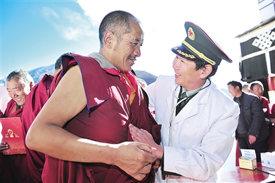 直贡梯寺住持桑登平措多次得到李素芝的诊治。长期以来,西藏军区副司令员兼军区总医院院长李素芝坚持利用节假日,带领医疗队深入农牧区送医送药、宣传党的路线方针政策,取得了良好的社会效益。 张 震摄