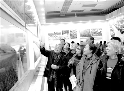 11月4日,北京展览馆“科学发展 成就辉煌”大型图片展现场,北京市民、84岁的老党员尚玉英(左一)结合图片,向大家介绍国家建设取得的辉煌成就。连日来,正在举办的“科学发展 成就辉煌”大型图片展吸引了全国各地的参观者,反响热烈。