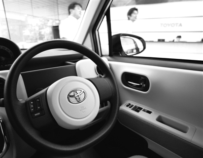 这是在日本东京拍摄的丰田汽车内饰。日本丰田汽车公司14日向日本国土交通省提交报告称,由于存在方向盘失灵的隐患,公司决定召回普锐斯等13款车型(2000年8月至2011年12月生产),总共约151.8万辆,创日本国内单次召回汽车数量的最高纪录。