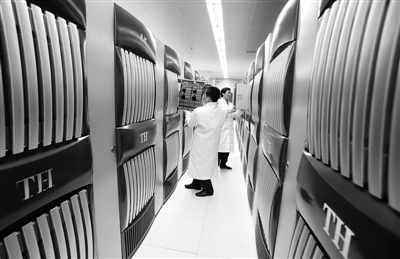 科研人员在调试“天河一号”超级计算机系统硬件,“天河一号”是我国自主研制的首台千万亿次超级计算机系统。 (资料图片)