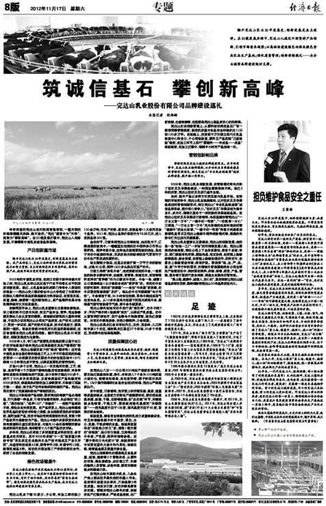 翻开完达山乳业50年发展史,创新发展是其主旋律。在50载发展历程中,完达山人通过不断坚持产品创新,引领市场需求趋势;以高标准建设绿色奶源及绿色食品乳品生产基地;强化质量管理;创新营销模式……为企业诚信品牌建设做好支撑。