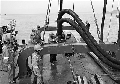 福建电力部门近年来推进边远海岛电力设施建设,解决企业电力不足的困难,提高了海岛供电的可靠性。图为电力部门在霞浦县海岛乡海面进行海缆施工。