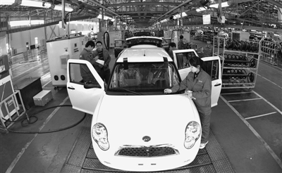 重庆市今年陆续出台多项“稳增长”措施,推动汽车工业持续增长。今年前三季度,重庆汽车产、销分别为141.9万辆和139.7万辆,同比增长13.6%和11.5%,分别比全国平均水平高出8.6个和8.1个百分点。图为工人在力帆汽车整车生产线上工作。 新华社记者 刘 潺摄