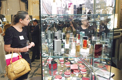 11月20日,人们在法国巴黎举行的“黄金广场——第10届巴黎奢侈品包装设计沙龙”上参观。为期三天的“黄金广场——第10届巴黎奢侈品包装设计沙龙”当日在巴黎莫里斯酒店开幕,法国数十家顶级奢侈品包装设计公司在这里向观众展示富于灵感创意的作品,包括化妆品、香水、巧克力、红酒以及高级定制的礼品创意和设计。 新华社发