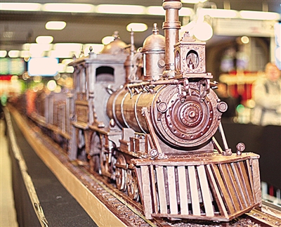 11月19日,在比利时首都布鲁塞尔火车南站,一列33.4米长的巧克力“火车”向参观者展出。此列巧克力“火车”共使用1285公斤比利时巧克力,耗费784个工作小时。布鲁塞尔“巧克力周”于19日至25日举行。 新华社发