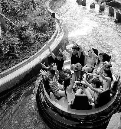 图为游客在香港海洋公园大型主题区“热带雨林天地”体验热带激流。近日,香港海洋公园在美国佛罗里达州获评全球最佳主题公园。