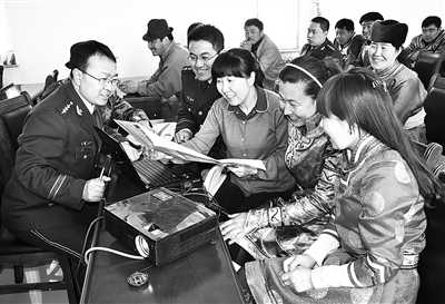 连日来,武警内蒙古兴安盟边防支队阿尔山大队官兵深入辖区农村牧区,紧紧围绕群众关心的热点问题,用蒙汉双语向广大农牧民群众解读党的十八大精神,受到了群众热