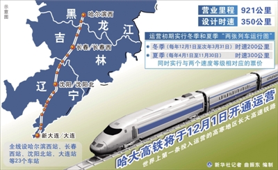 本报北京11月24日讯 记者齐慧 苏大鹏从铁道部获悉:哈尔滨至大连高速铁路已完成开通运营前的各项准备工作,将于12月1日正式开通运营。