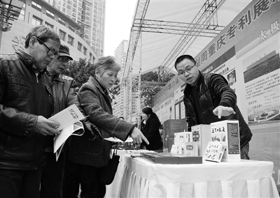 11月29日,第六届中国专利周重庆专利展示交易会现场,参展商正在为观众介绍专利产品情况。本届展会以“专利保护创新 智慧改变生活”为主题,设置了知识产权成就展、企业专利产品展、中小学专利产品展和非职务发明专利展4个板块,500多项与日常生活密切相关的专利技术集中亮相,涉及生物医药、教育科学、医疗器械等领域。 本报记者 吴陆牧摄