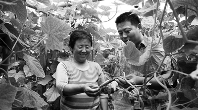 ②藁城市对蔬果实施高头嫁接改造,实现了优良品种全面更新。图为南瓜嫁接黄瓜。