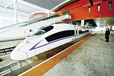 准备从哈尔滨出发的哈大高铁列车(11月30日摄)。