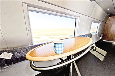 11月30日,在高速驰骋的哈大高铁上,杯子中的水一点也没洒出来。