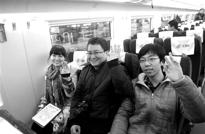 列车在驶离车站大约2分钟后逐渐加速,隔窗远眺,高速公路上以120公里速度前行的轿车开始还与列车同行,逐渐被远远地甩在后面。这时,车厢内的电子显示牌上显示车行时速为200公里。因为车窗采用了防晕眩玻璃,望着近处快速闪过的风景,并不觉得眼晕,放在桌子上的满杯水没有一点晃动。坐在旁边的大连客车段党委书记陈希祥告诉记者,他已随运行试验列车行走多次,最快时速跑过380公里。一旁坐着一位姓张的年轻人,家住沈阳,在大连一家制药厂供职。他说,今天下午3点,他和同事要在长春开会,如果不乘这趟高铁,昨天晚上就得动身赶路。他高兴地说,他的女朋友在沈阳工作,一周休息两天,为了相聚,光坐火车往返就得十多个小时。如今好了,5个小时可走一个来回。