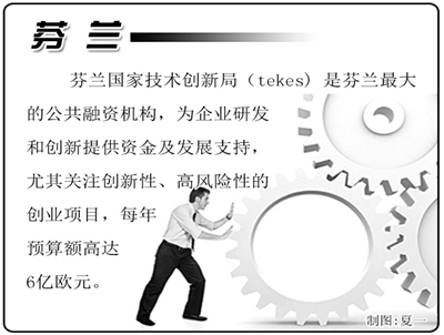芬兰国家技术创新局(tekes)是芬兰最大的公共融资机构,为企业研发和创新提供资金及发展支持,尤其关注创新性、高风险性的创业项目,每年预算额高达6亿欧元。