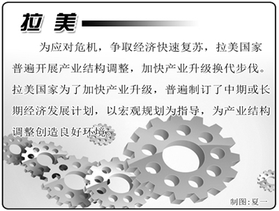 近年来,拉美国家受美国经济不景气和欧债危机的影响,经济增长速度不复2003年至2008年间的强劲势头,为应对危机,争取经济快速复苏,拉美国家普遍开展产业结构调整,加快产业升级换代步伐。