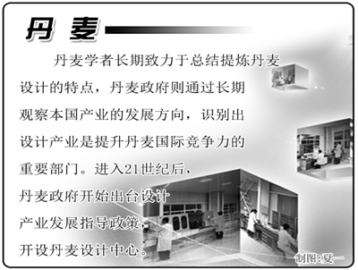 站在出色的丹麦设计业背后的是丹麦政府提供的支持网络。丹麦学者长期致力于总结提炼丹麦设计的特点,丹麦政府则通过长期观察本国产业的发展方向,识别出设计产业是提升丹麦国际竞争力的重要部门。进入21世纪后,丹麦政府开始出台设计产业发展指导政策,开设丹麦设计中心,与此同时,丹麦首都哥本哈根每年开设两次丹麦设计时装节,推广丹麦服装设计,还定期举办丹麦设计奖的评选活动,为推广丹麦设计不懈地搭设舞台。
