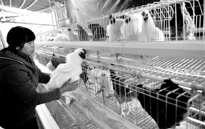 12月3日,湖北省宣恩县农民李绍琼展示她用人参养殖的“五爪凤鸡”。近年来,湖北省宣恩县长潭河乡中坝村农民龚伦朋、李绍琼夫妻使用人参和大米养鸡,他们以每公斤700元至800元的价格购进人参,切片、磨粉与大米拌匀发酵,再用特制烤箱烘干,碾碎后加工成养鸡的“人参饲料”用于养殖“人参鸡”,一只“人参鸡”的产值最终能达到约1200元。 宋 文摄(新华社发)