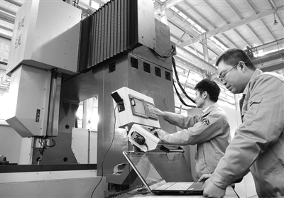 12月5日,由重庆硬汉数控机床有限公司自主研制的DMV系列龙门式切削中心机投产。该产品填补了重庆市精密大型机床制造行业的空白。图为技术人员在装配车间内对大型龙门数控机床进行跑合测试。