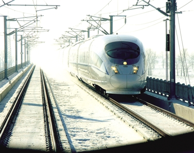 图①:哈大高速列车驶出哈尔滨西站。该列车是我国自主研制的首款高寒动车组列车,“平稳、降噪、节能”是其创新与进步所在。