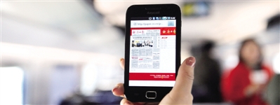 图⑧:在疾速行驶的哈大高速列车上,乘客用手机上网。