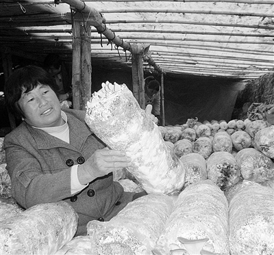 山东省无棣县充分利用玉米秸、玉米芯、棉花秸秆等农作物秸秆大力发展食用菌产业,实现了传统农业的可持续发展。图为无棣县车王镇小胡村村民邓兰芝正在查看食用菌长势。 蒋惠庆摄