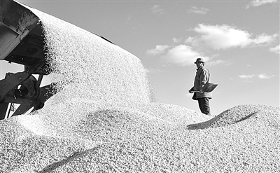 下图 黑龙江北安市建设农场种植户收获玉米(2012年10月28日摄)。