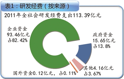 2011年,山西省全社会研发经费支出113.39亿元,比上年增长26.2%;山西省研究与试验发展经费强度(研发经费占GDP的比重)为1.01%。(表1)