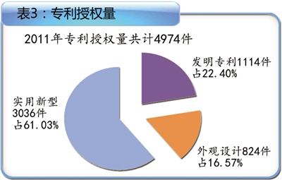 2011年,山西省专利授权量达4974件,获得国家级科技奖励12项。(表3)