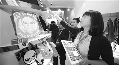 二维码还让传统商家可以将零售中的部分环节搬到线上。“过去每逢新年、‘五一’这样的促销季,在收银台前排半个小时队付不了款是常事,有些顾客看看长队,就把开好的小票撕掉走人了。但现在依靠互联网,找到了新的解决方法。”上品折扣技术总监张鹏手里拿着一台平板电脑,当顾客选好商品,导购在平板电脑中选中该商品,就会生成一个二维码,顾客拿手机扫描二维码,即可直接确认付款。