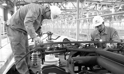 12月19日,技术人员在对动车受电弓进行检查。距离2013年春运还有一个多月时间,上海铁路局启动了为期45天的动车组春运整修活动,动员上海动车客运段全段6个动车所2100多名职工投入到动车组整修工作中,提前为动车“体检”,确保2013年春运顺利开展。