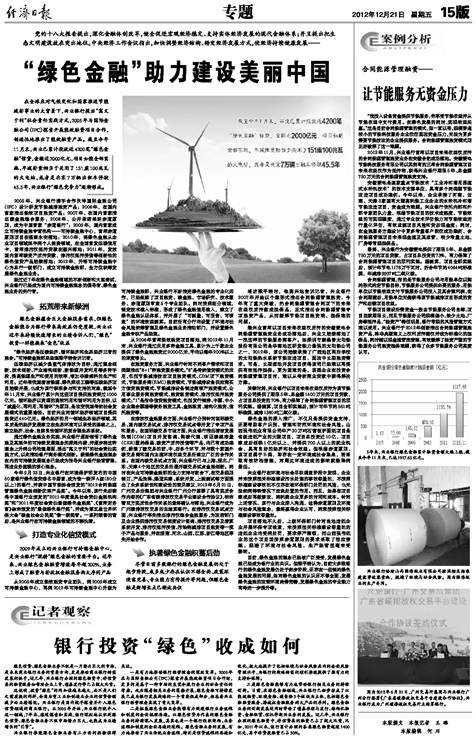 从2006年首笔能效融资项目落地,到2012年11月末,兴业银行通过运用多种金融工具,累计为上千家企业提供了绿色金融融资近2000亿元,平均以每年200%以上的速度增长。
