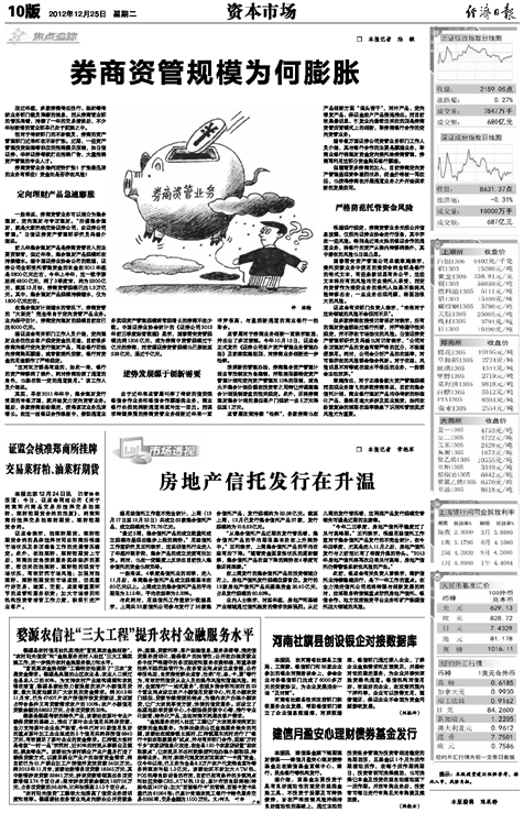 据申银万国证券公司资管业务部门工作人员介绍,其与银行合作的主要是票据业务,即商业银行将理财资金定向委托给券商管理,券商再利用这部分资金购买银行票据。