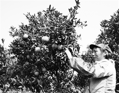 隆冬时节,中国椪柑之乡——湖南泸溪一派丰收景象,椪柑园里不时传来果农们的笑声。目前,泸溪椪柑总面积已发展到30万亩,挂果面积18万亩,产值约2亿元。图为湖南泸溪县武溪镇橘农周安栋一家正在采摘椪柑。