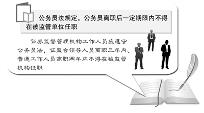 此外,证券投资基金法修订草案还对监管机构工作人员在被监管机构任职作出明确限定,证监会人员在职期间或离职后规定期限内不得在被监管机构任职。孙安民表示,二次审议之后,一些常委会组成人员和地方建议增加规定,证券监督管理机构工作人员在离职后的一定期限内不得在被监管机构中任职。经研究,公务员法已规定公务员在离职后一定期限内不得在被监管的单位中任职,证券监督管理机构的工作人员应遵守公务员法的上述规定,本法对此可作出衔接性规定。据此,修订草案二次审议稿规定:“国务院证券监督管理机构工作人员在任职期间,或者离职后在公务员法规定的期限内,不得在被监管的机构中担任职务。”因此,按照公务员法规定,“证监会领导人员在离职三年内、普通工作人员离职两年内不得在被监管机构任职。”
