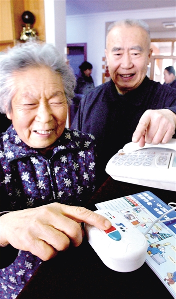 | 2012年12月31日,辽宁沈阳市铁西区景星小区,赵桂香(左)用一键通呼叫医务人员上门服务。医疗卫生事业的发展进步,为百姓的健康构建了强有力的保障。 |