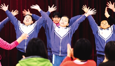 | 2012年12月31日,河北三河市特殊教育学校的学生正在排练《彩虹的约定》文艺节目。社会保障体系的建立健全,让困难群体分享改革发展的成果。 |