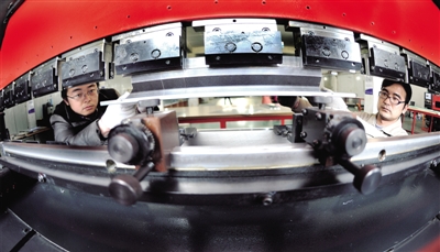 | 1月1日,河北霸州市一家企业数控加工车间技术人员加班安装调试设备,确保节日里正常生产。 |