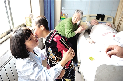 | 1月1日,甘肃省康复中心医院神经康复科康复治疗师王芳红(左)坚守岗位,热情为患者服务。 |
