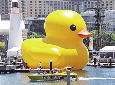 自2007年以来,这只巨大的黄色鸭子已经造访过世界各地的12座城市。据悉,橡皮鸭将停留在悉尼情人港供游客观赏,直至1月23日悉尼节闭幕。