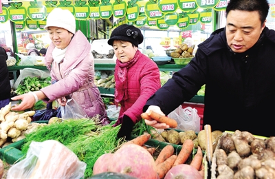 价格虽不断上涨,供应量却有保障。刘通说,新发地市场近期蔬菜的上市量比去年同期增加15%至20%左右,市场内各个交易区受到场地的局限经常出现拥堵现象,呈现购销两旺态势。随着全国蔬菜大生产大流通格局的形成,北方居民早已告别了传统冬季当家菜只是萝卜、白菜的局面,他介绍,今年反季节蔬菜占比达到75%左右,种类有60种至70多种,居民菜篮子越来越丰富。