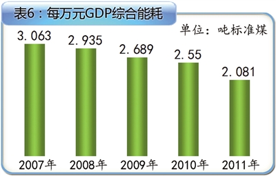 2011年,青海省每万元GDP能耗2.081吨标煤。(表6)