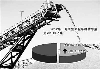 本报北京1月9日讯 记者林火灿从兖矿集团获悉:2012年,兖矿集团煤炭生产经营总量首次达到1.13亿吨,比上年增加2221万吨。其中,集团在山东省外及国外的煤炭产量为3779万吨,同比增长17.95%,占集团煤炭总产量的50.19%,首次超过在山东省内的煤炭产量,这标志着兖矿集团的外部资源开发战略取得突破性进展。