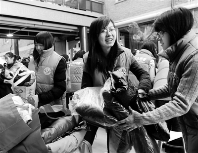 1月9日,志愿者在收集市民捐赠的衣物。当日,共青团北京市委员会、北京市青年联合会等单位在京举行“温暖衣冬”爱心捐赠活动。发动全社会捐衣捐物,帮助各地困难群众温暖过冬。截至9日晚,共收到捐赠冬衣3万件。