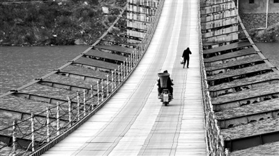 1月9日,甘肃陇南市文县漩滩,当地群众正在通过横跨在白龙江上的索道桥。白龙江干流已建成五座梯级电站,为当地提供了充足的电力。但随着蓄水增加,江面加宽,两岸居民往来不便。当地政府没有一味追求建设高、新、大的桥梁,而是因地制宜建起了实惠、安全的跨江索道桥。 本报记者 邓 维摄