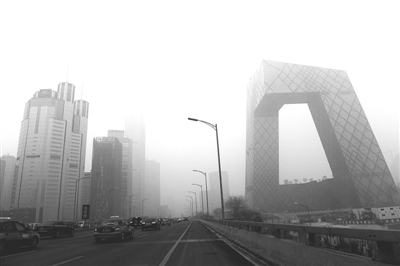 上图 1月13日下午,北京CBD地区的建筑笼罩在雾霾中。当天,北京空气质量仍处于严重污染水平。据介绍,北京将继续实施《北京市空气重污染日应急方案》的各项措施,包括发布提醒信息、建议公众共同开展污染减排,尽量公交出行等。