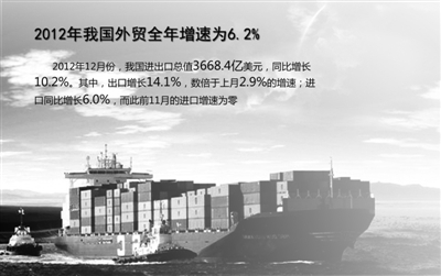 2012年我国外贸全年增速为6.2%,尽管是全球主要经济体中表现最好的,但今年进出口形势依然不容乐观。