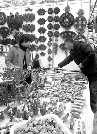 左图 1月15日,市民在展会上挑选工艺品。当日,吉林省政府和长春市政府共同主办的第四届吉林冬季农业博览会暨净月潭新春大集,正式开门迎客。农业博览会吸引了近200余家绿色食品、农产品、工艺品企业参展。 本报记者李己平 通讯员贾惠淇摄影报道