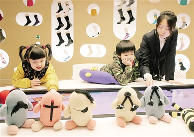 1月20日,工作人员带领小朋友在北京日盛袜文化博物馆未来馆参观体验。当日,北京首家袜文化博物馆——北京日盛袜文化博物馆正式落成迎客。该博物馆位于北京房山区,向公众集中展现与袜文化相关的实物、图片和声光电信息。 王 丹摄(新华社发)